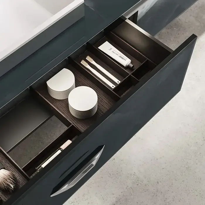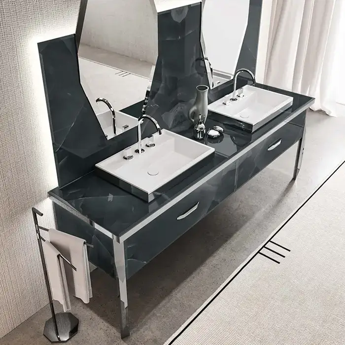 VITAGE milldue edition HILTON Тумба под 2 раковины 2266х566х770 мм, 2 бок стенки с ножками, 2 ящика, фурнитура полир сталь, отделка стекло onice smoke