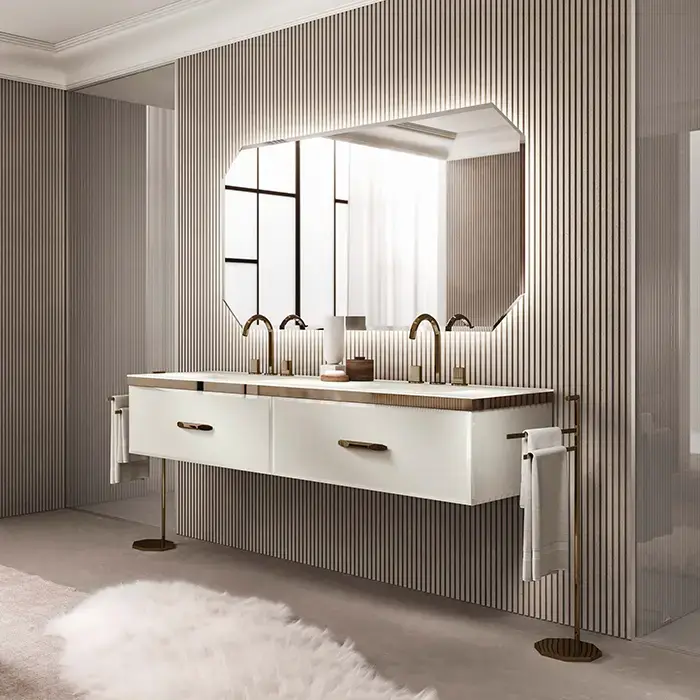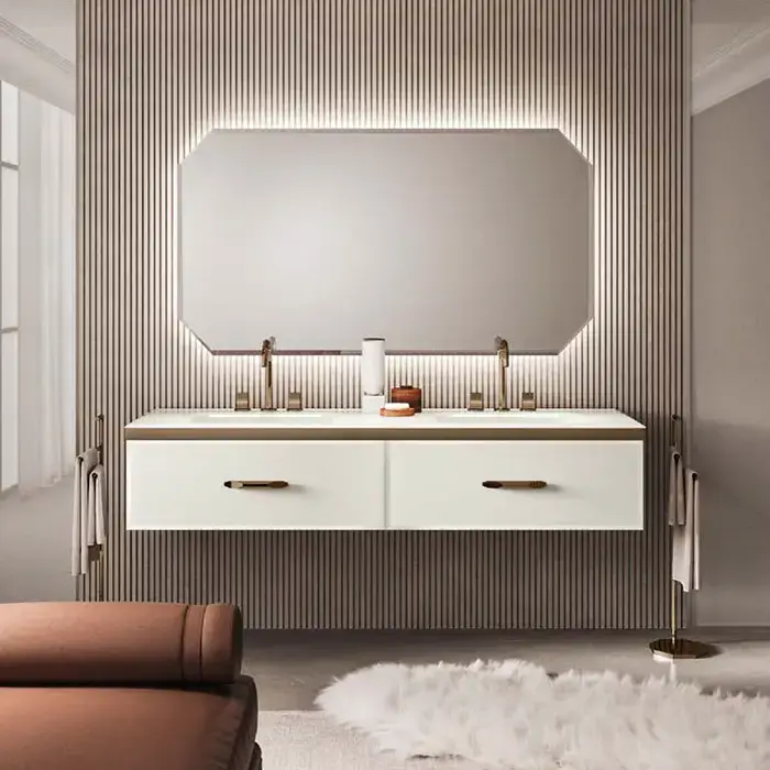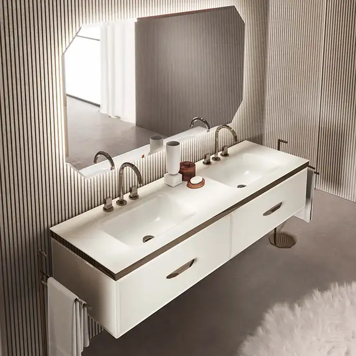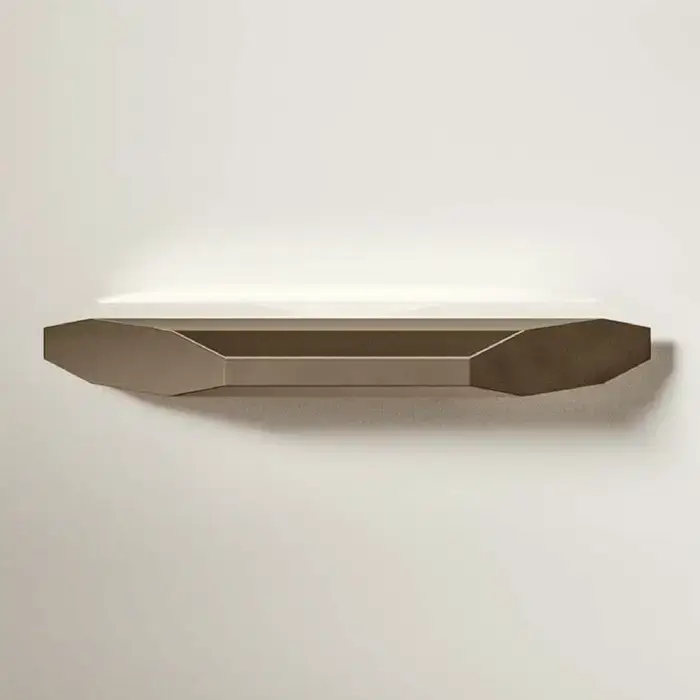 VITAGE milldue edition HILTON Столешница стеклянная 1800х552х50 мм, 2 интегрированных раковины, 3 отв для смесит, профиль Bronzo, отделка Riso acidato