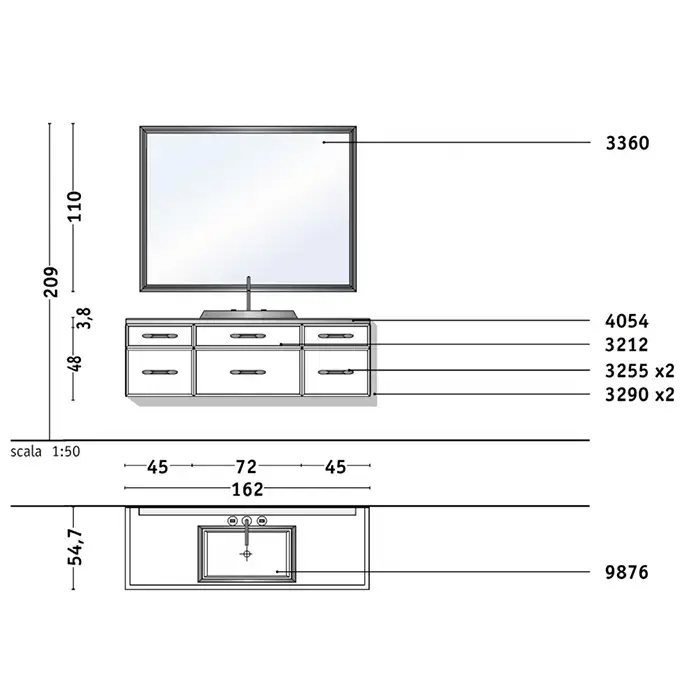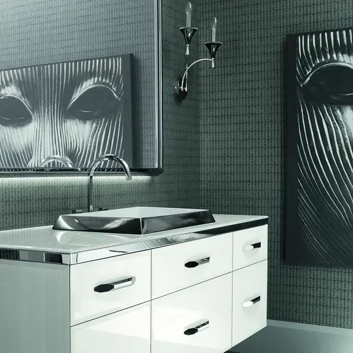 VITAGE milldue edition Hilton База 45х54.9хh48см, 2 ящика, лак. стекло, Цвет:Bianco-41, ручки Acciaio lucido-98