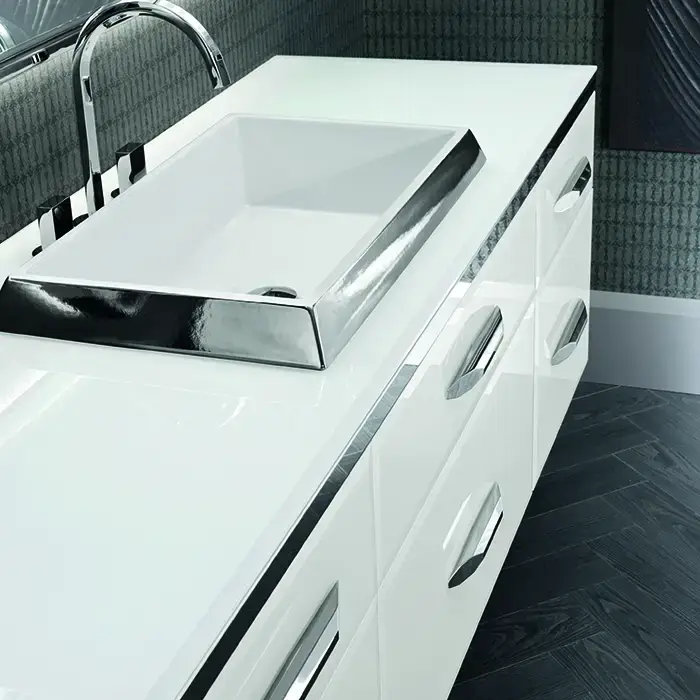 VITAGE milldue edition Hilton Столешница п/рак 162х52.2хh3.8см c3отв. лак. стекло/сталь, цвет: bianco-41/Acciaio lucido-98