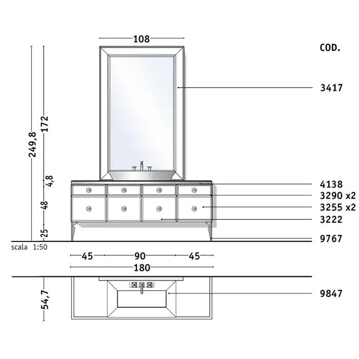 VITAGE milldue edition Majestic База 45х54.9хh48см, 2 ящика, лак. стекло, Цвет:Mandorla-13, ручки Acciaio oro-95
