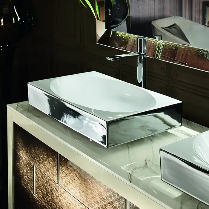 VITAGE milldue edition Раковина PARIGI 700х380х145 мм., без перелива, наружная поверхность платина, внутри белая