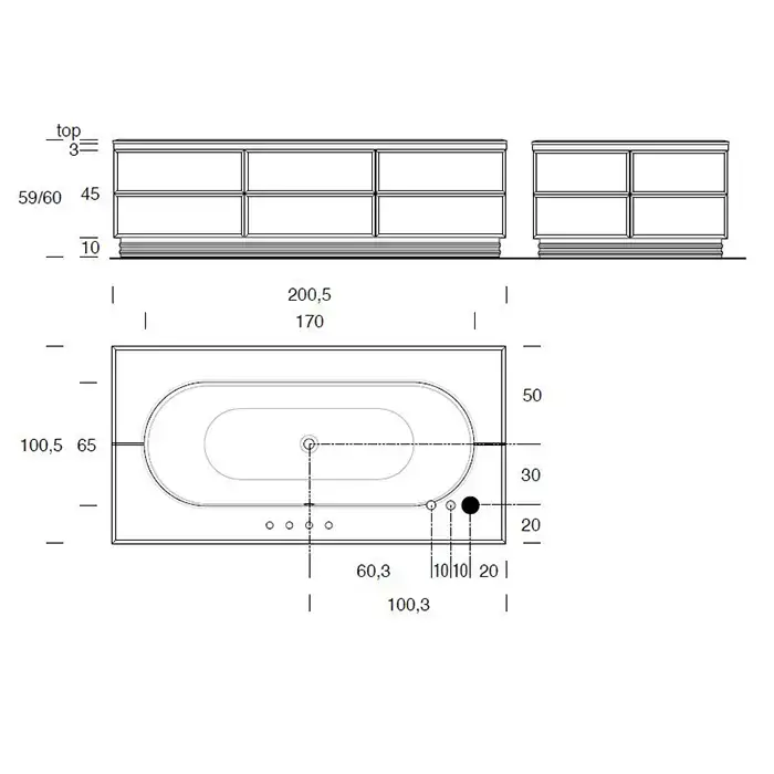 VITAGE milldue edition Hilton Топ стеклянный для ванны 2005х1005х12 мм., отделка стекло Alligator silver