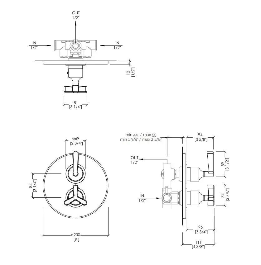 Внешняя часть встраиваемого термостата для душа DEVON&DEVON MANHATTAN