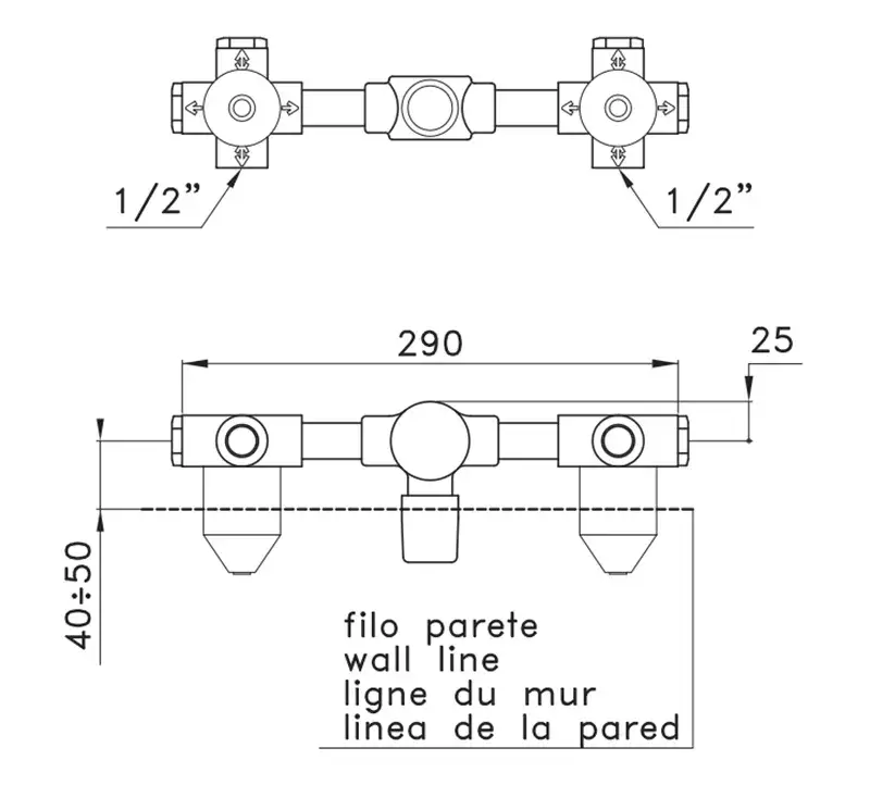 Внутренняя часть смесителя на 3 отверстия из стены для раковины L29 BRONZO