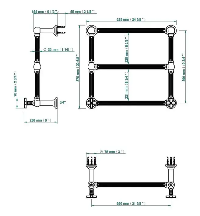 Водяной полотенцесушитель THG Grand central Black Onyx U9M-TWF3H2